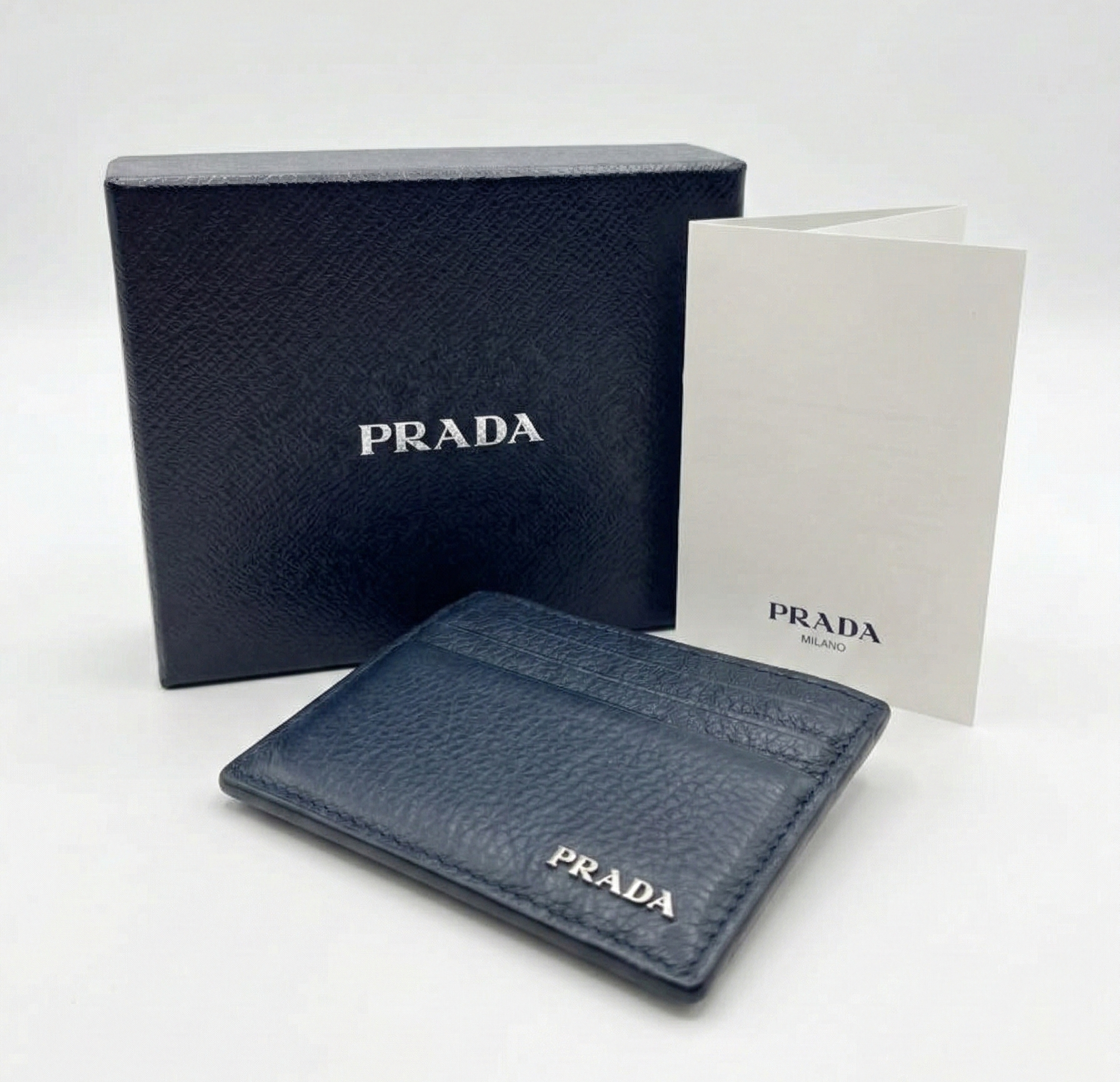 PRADA Saffiano Leather Card Case Bicolour Navy
